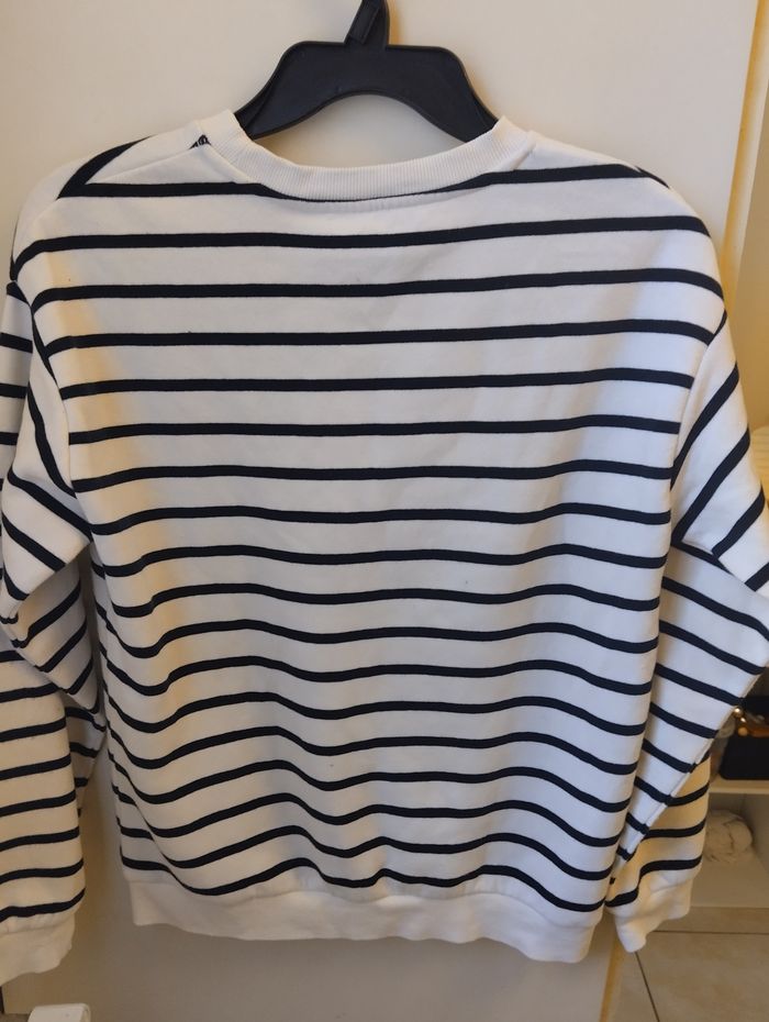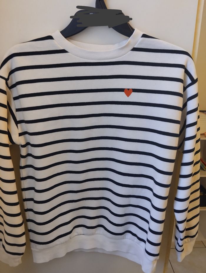 Joli sweat style marinière avec un cœur rouge de la marque Kiabi. En très bon état, taille 12 ans