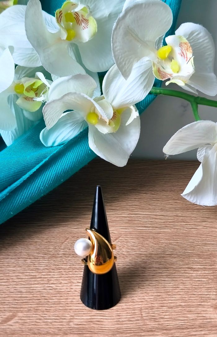 Magnifique bague à perle qui ravira vos doigts. Vendu avec une boîte de protection à bijoux. Couleur: Dorée Matériaux : Acier inoxydable de bonne qualité Mesure: Voir image État: Neuf #bague #baguefemme #rings #dorée #gold #or #acierinoxydable #accessoires