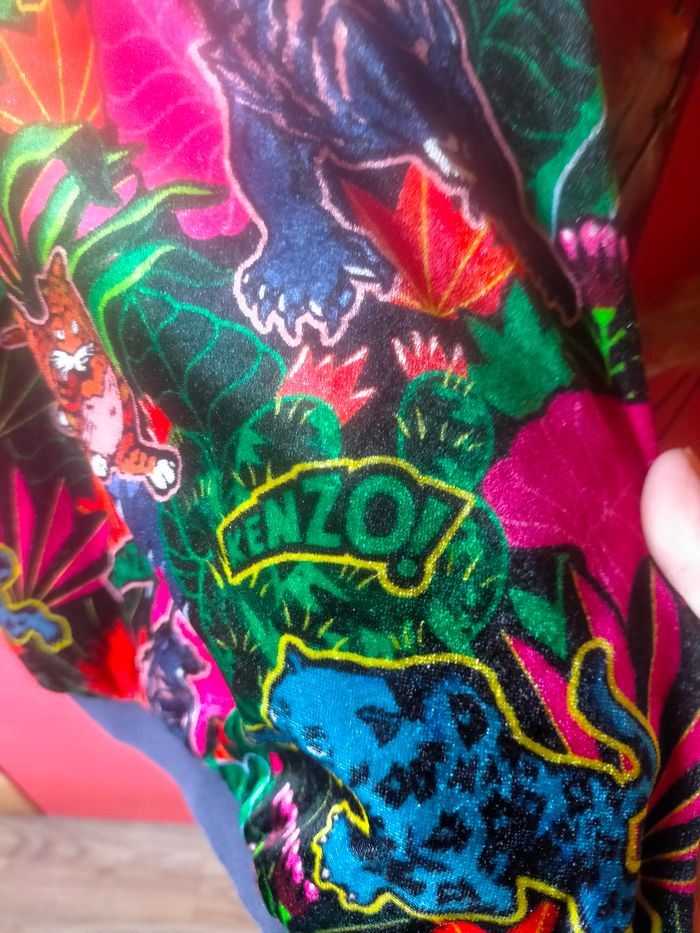 Comme neuf. Joli sweat en velours imprimé jungle multicolore avec signature Kenzo