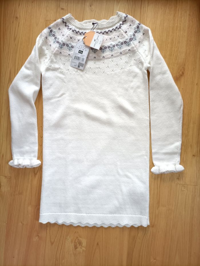 Robe pull laine 10 ans fille Sergent Major blanche manches longues motifs neuve étiquette - photo numéro 1