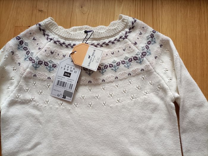 Robe pull laine 10 ans fille Sergent Major blanche manches longues motifs neuve étiquette - photo numéro 3