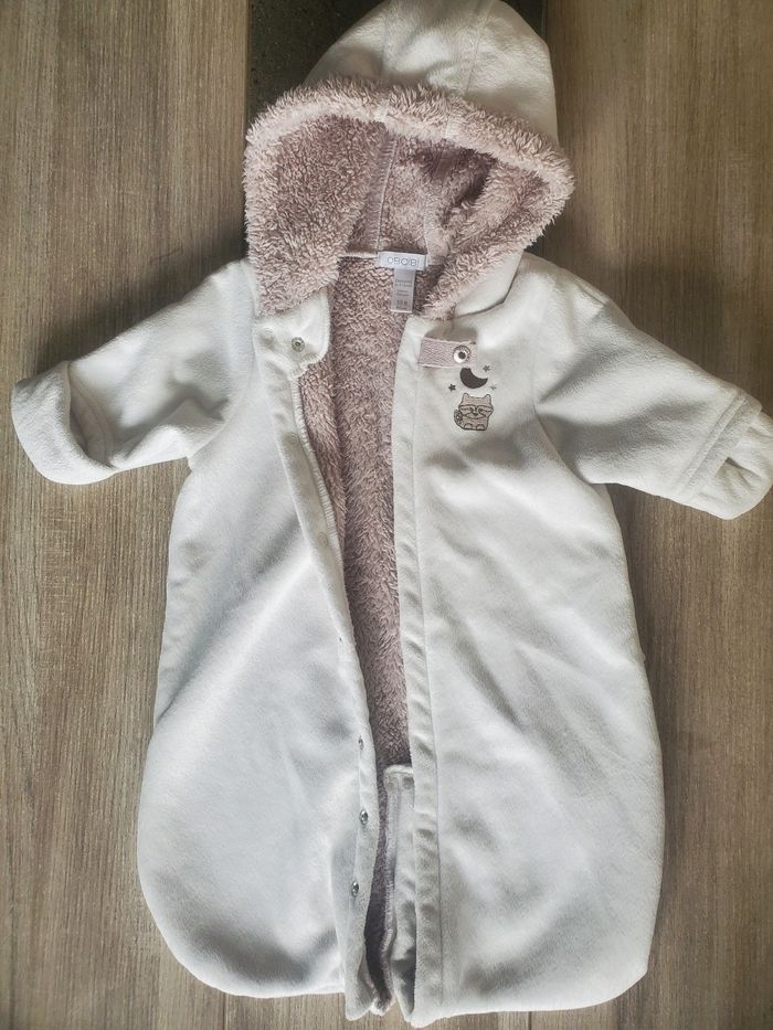 Manteau combi 1/3 mois Marque obaibi Moufles intégrées Peut se porter jambes séparés ou non Bon état .