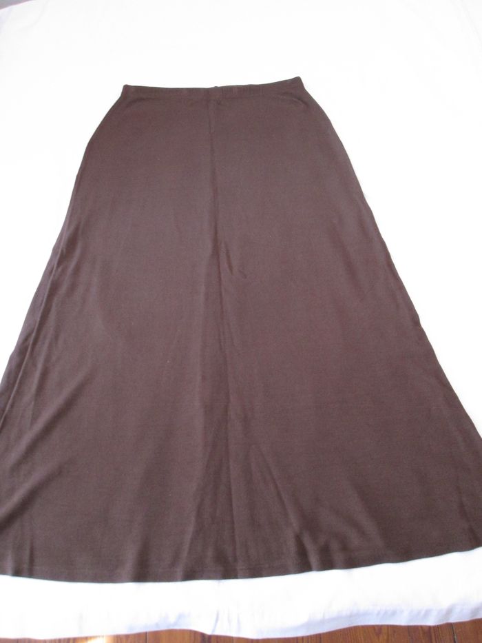 Vends jupe Morgan marron évasée. Élastiquée à la taille. 91 % viscose + 5 % polyamide + 4 % élasthanne. Longueur : 95 cm. Taille 46. Très bon état. N'hésitez pas à consulter mes autres annonces.