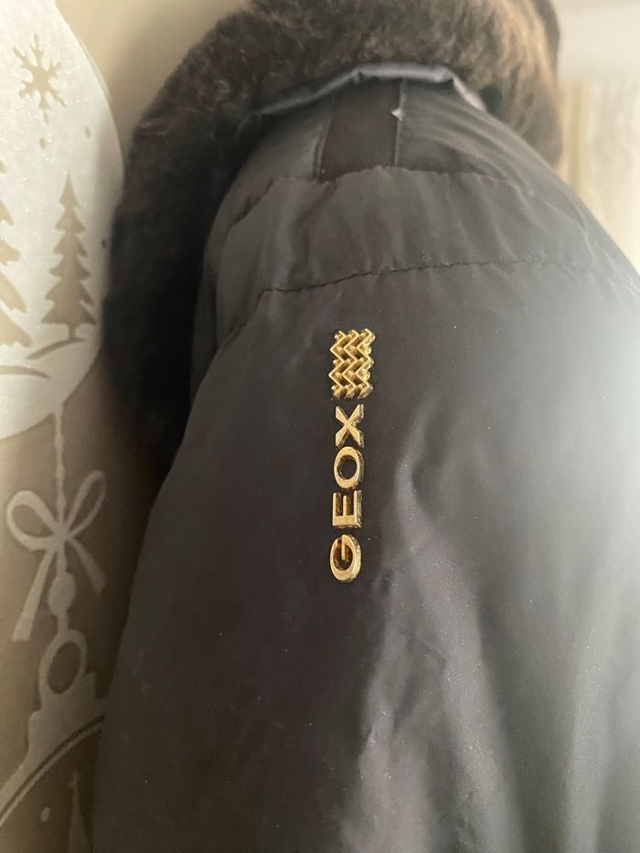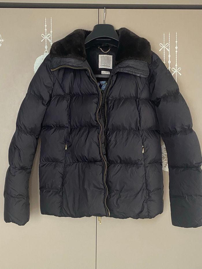 Doudoune Geox noire taille XS Fermeture par zip Col en fausse fourrure noire douce 2 poches intérieures 2 poches devant fermées par zip Longueur 62 cm