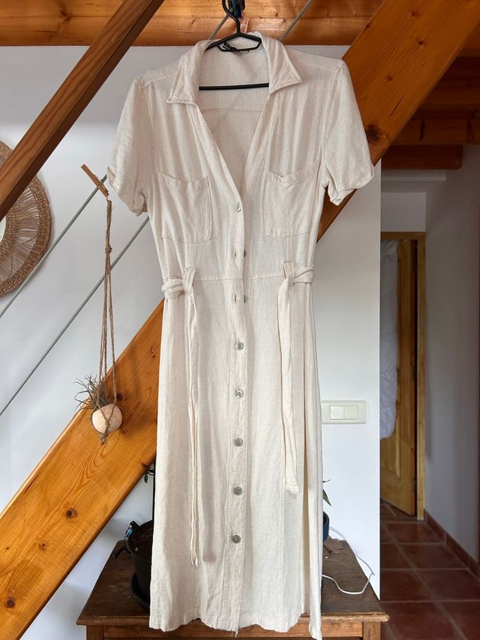 Robe en lin beige/crème de la marque Stradivarius Taille M très bon état