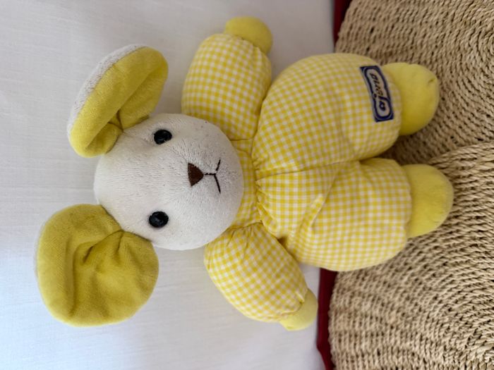Doudou Souris jaune carreaux AJENA 30 cm env . - photo numéro 1