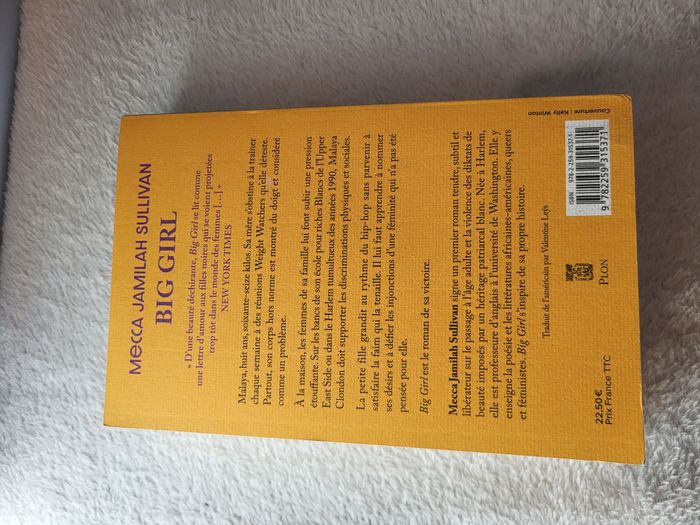 Livre Big Girl De l'auteur Mecca Jamilah Sullivan * D'occasion, la couverture est abîmée. Les pages ont jauni. ➺ Informations : . Éditions Plon . Livre en Français
