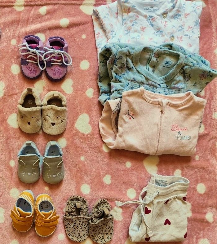 🌟 LOT VÊTEMENTS FILLE 3 MOIS (14 PIECES)🌟 đŸ§ș État : TrĂšs bon Ă©tat đŸ·ïž Marques : Kiabi, tape Ă  l'oeil... 📏 Taille : 3 mois 💰 Prix mini : 10,00 € ✹ LOT COMPLET DE 14 PIÈCES ✹ - 2 chapeaux, - 3 paires de chaussons, - 2 paires de chaussures, - 1 pantalon, - 3 tee-shirts manches longues, - 3 pyjamas donc 1 sans manches. 🔍 Infos importantes ✔ VĂȘtements propres et bien entretenus ✔ Maison non-fumeur ✔ Pas de taches ni de trous đŸ“© N’hĂ©sitez pas Ă  me contacter avant achat pour toute question đŸ€ Envoi rapide et soignĂ© en trĂšs bon Ă©tat