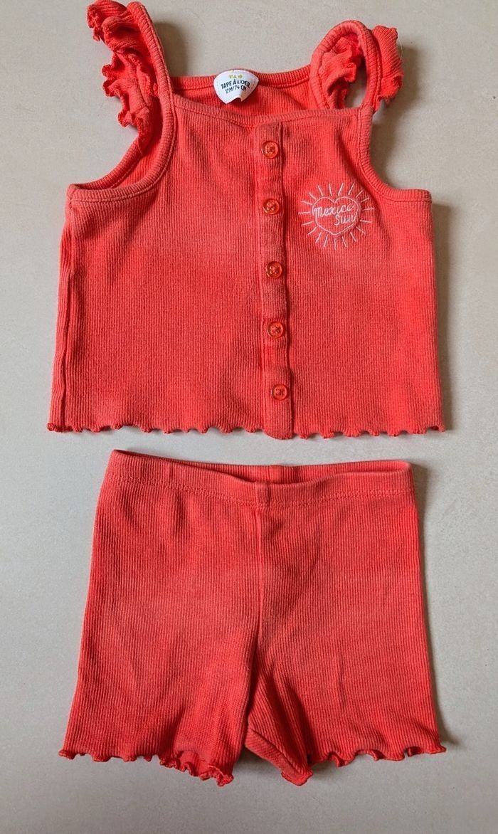 ✨ Très bel ensemble corail pour petite fille de 12 mois ✨👶🏻 👕 En très bon état, propre et soigneusement entretenu 💚 Favorisez le réemploi, top pour l'environnement et pour le porte monnaie ! Caractéristiques : ✔️ Marques : Tape à l'oeil ✔️ Peut se porter ensemble ou séparément. ✔️ Sans défauts ! 💰 Prix super mini : 3€ 📦 Envoi rapide et soigné Si plusieurs articles vous intéressent, possibilité de faire des lots avec un prix avantageux. N'hésitez pas à me contacter ! ✨