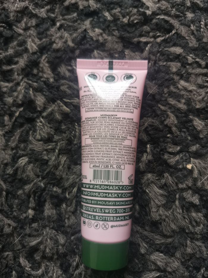 Jamais ouvert Révélez une peau éclatante avec le gommage corporel Velvety Glow de Mudmasky, un soin exfoliant doux aux fruits pour un corps doux et lumineux. Enrichi en agents exfoliants de haute qualité, il lisse le grain de peau tout en sublimant son éclat naturel. Enrichi en rose, en mangue et en citron, ce gommage à base de bambou offre une expérience de douche luxueuse tout en rafraîchissant la peau et en lui apportant un aspect plus sain. Une utilisation régulière laisse la peau douce, lisse et éclatante, contribuant à améliorer sa texture et sa vitalité.