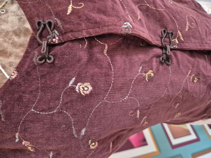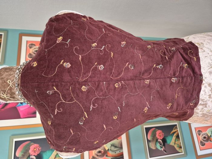 Gilet sans manches vintage en velours bordeaux brodé fleurs taille S/M - photo numéro 9
