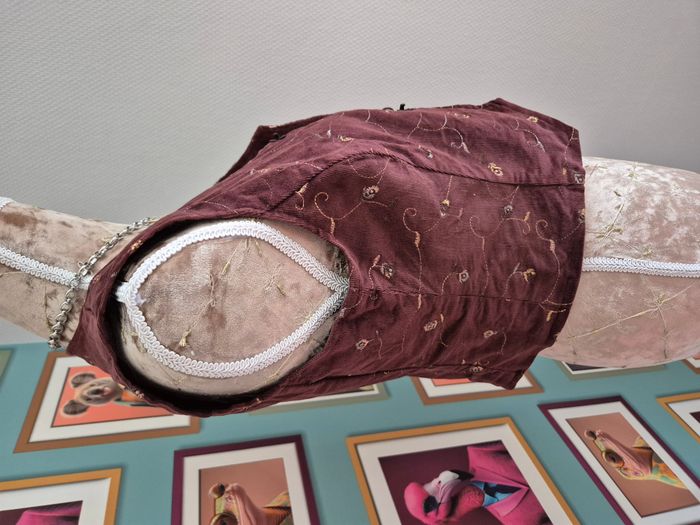 Gilet sans manches vintage en velours bordeaux brodé fleurs taille S/M - photo numéro 8