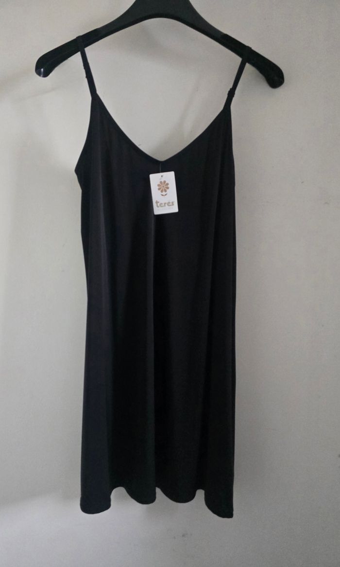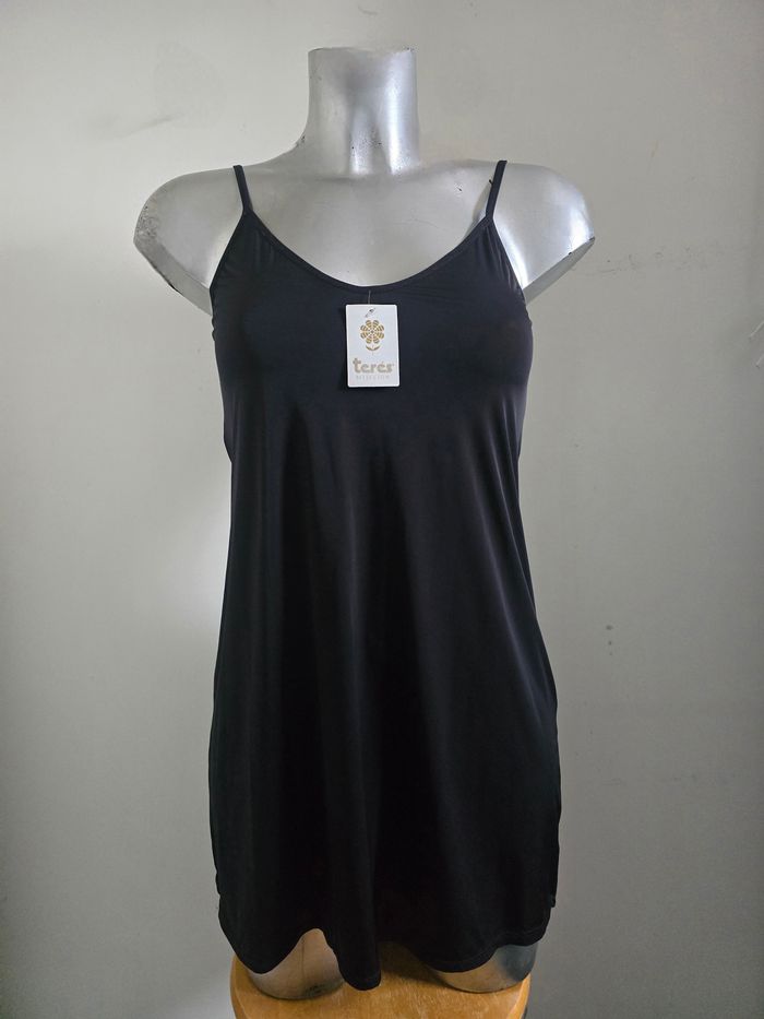 ✅ Nuisette Noire ou fond de robe Terés Seleccion (fabriquée en Espagne) - Modèle Belasi Camison - Neuve avec étiquette - Taille L (petit plûtot M ou L ajusté) ✔ fines bretelles réglables, coupe fluide ✔ 85% Polyamide, 15% Elasthanne (matière microfibre "seconde peau" très douce et extensible) ✔ Longueur 74 cm (bretelles incluses) - largeur sous poitrine 37 cm ✔ Envoi rapide et soigné - remise sur lot