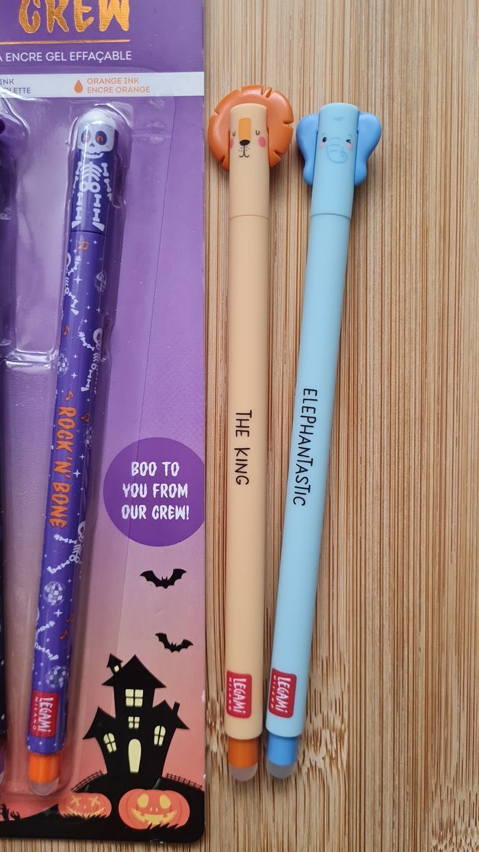 Legami Effaçables - NEUFS = 5 Stylos -> 1 SET Halloween 2025 Limited Edition Nouveauté Zombie + Squelette + Chat Noir -> 1 Stylo Éléphant 🐘 -> 1 Stylo Lion 🦁 de la Collection SAVANE 2024 2 éditions plus commercialisées définitivement Neufs - Authentiques LEGAMI Au besoin nous avons toutes les éditions Legami effaçables et lovely friends qui existent depuis leurs débuts en 2020, toutes les éditions les plus recherchées, tout n'est pas encore en ligne, nous demander 🥰