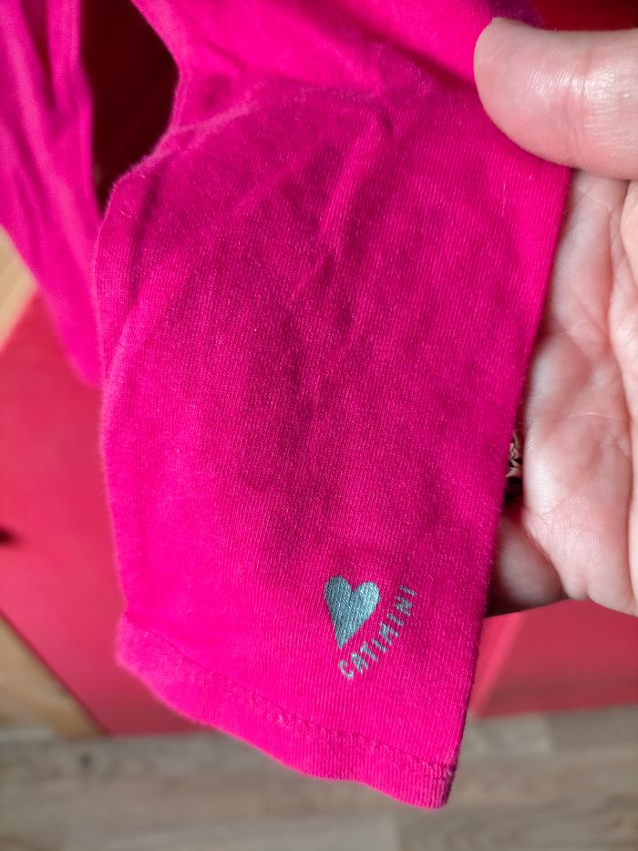 TBE Très joli legging en jersey de coton fuchsia avec cœur et signature catimini dorés à la base d'une jambe