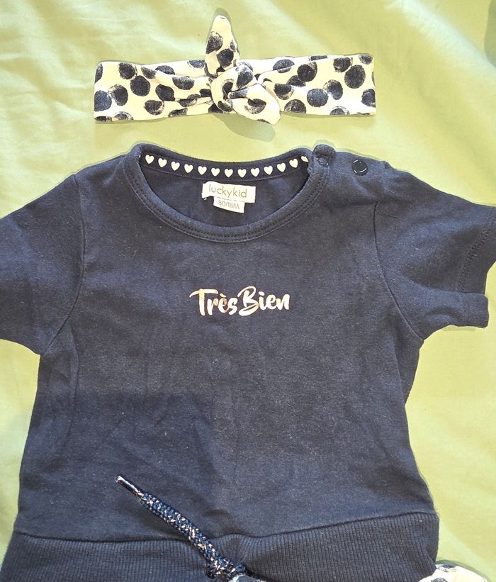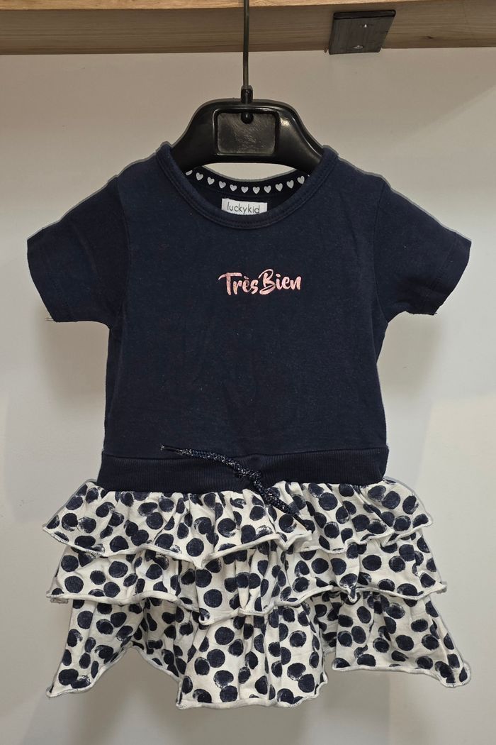 Robe a manche courte, couleur bleu marine et blanche. Vendu avec le bandeau. Marque #luckykid en 18 mois. Remises sur lots activé ✅️ De plus, moins de frais de livraison 🪙📦 Envois rapide et soigné ! 🚚