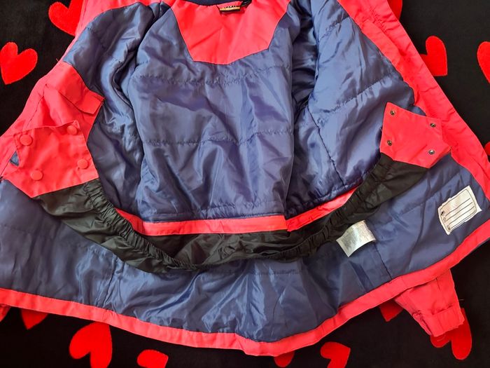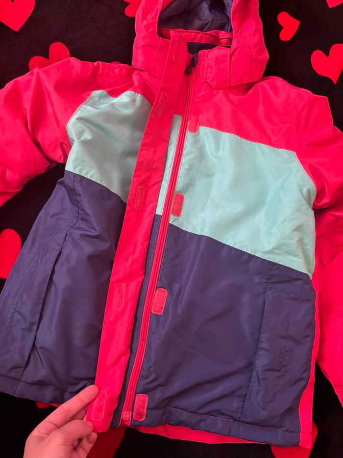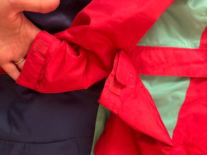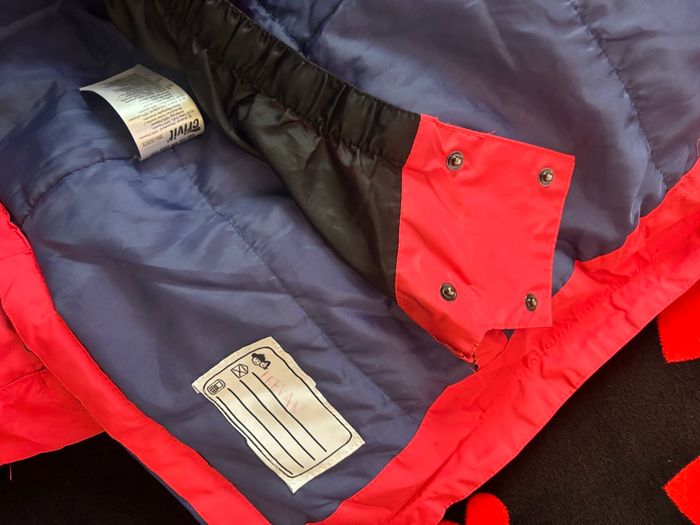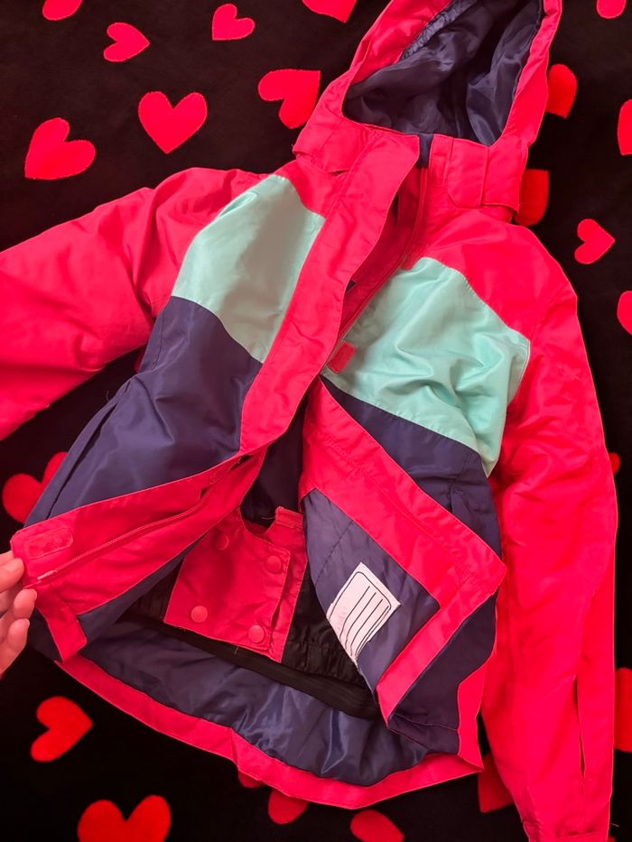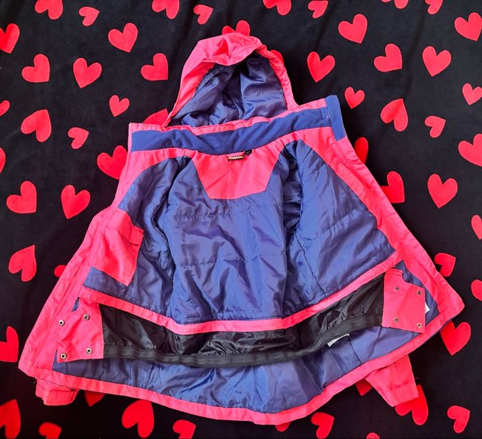 • Veste de ski imperméable. Peut servir aussi en hiver, pour les autres sports … 12 ans. Poches à l’avant. La capuche peut se retirer. Mixte. Un petit point noir à l’arrière mais rien de méchant sinon très bon état. Idéal pour une classe des neiges ou un séjour à la montagne prévu. Prénom de mon fils écrit sur l’étiquette