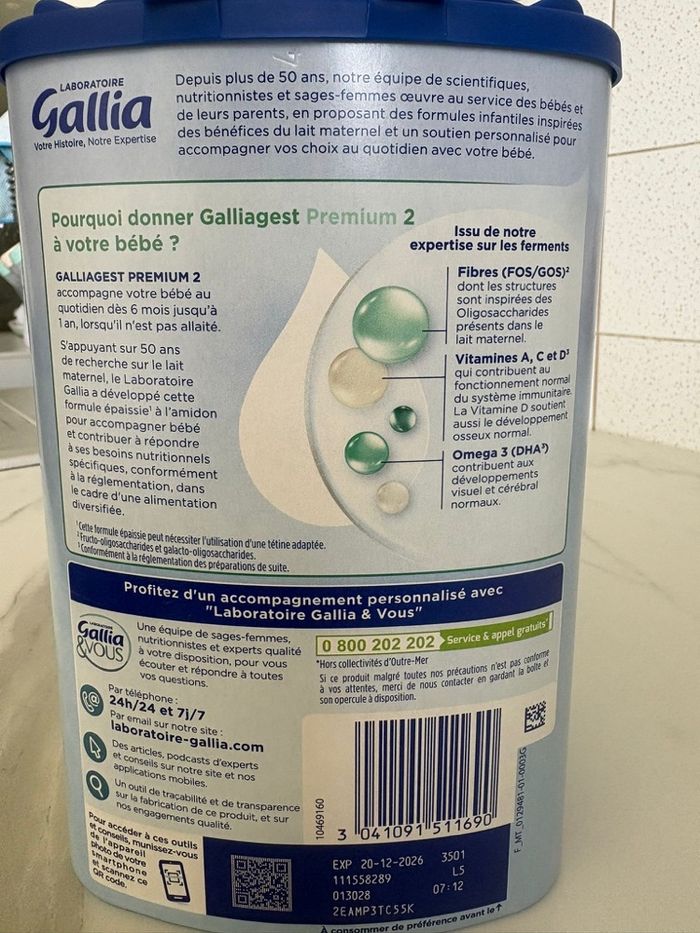 Boîte de lait, Gallia neuf jamais ouvert juste des éclipser par erreur, formule épaisse, deuxième âge, prix d’achat, 23 € date de péremption, 20/12/2026, voir sur la dernière photo