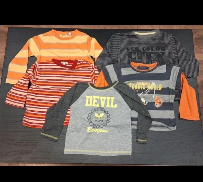 Lot de 5 t-shirts manches longues – Garçon – Taille 2 ans (86 cm) Lot pratique de 5 t-shirts à manches longues, parfaits pour l’automne, l’hiver et la mi-saison. Faciles à assortir et confortables pour le quotidien. Idéal pour compléter la garde-robe de votre enfant. • Taille : 2 ans (86 cm) • Quantité : 5 t-shirts • Style : Casual, pratique • État : Très bon (portés occasionnellement) Envoi rapide et soigné. N’hésitez pas à demander plus de photos ou infos ! #lotdetshirts #tshirtgarçon #mancheslongues #garçon2ans #86cm #secondevie #bonplanmode #autonnehiver #modeenfant #pratique #casual