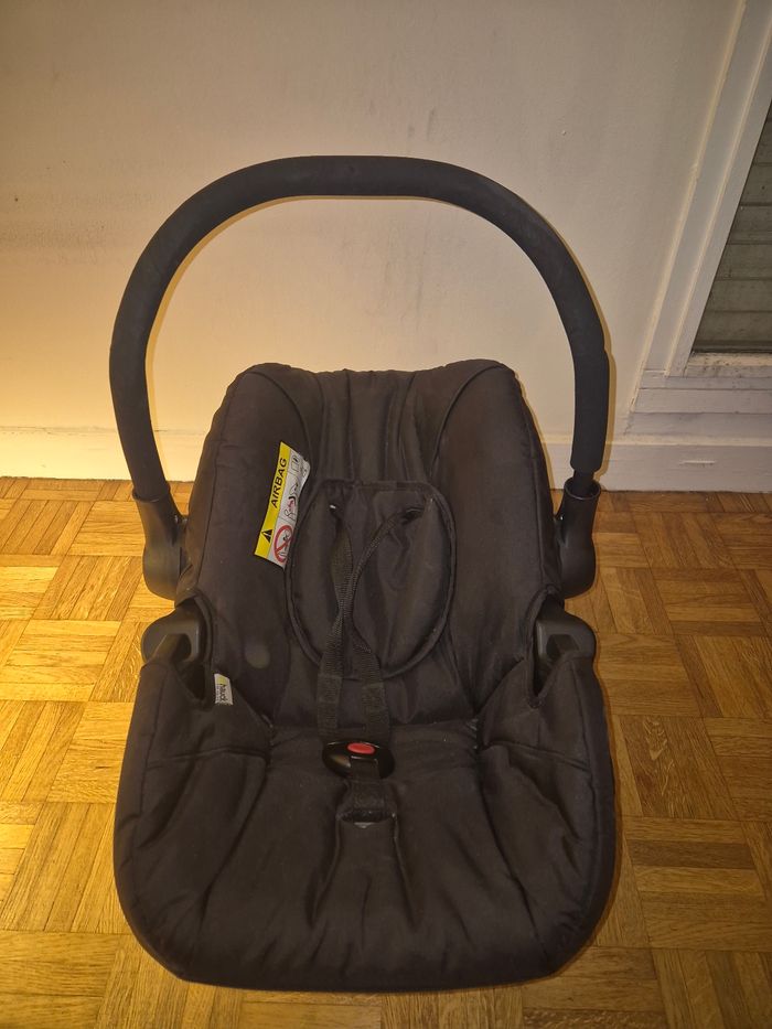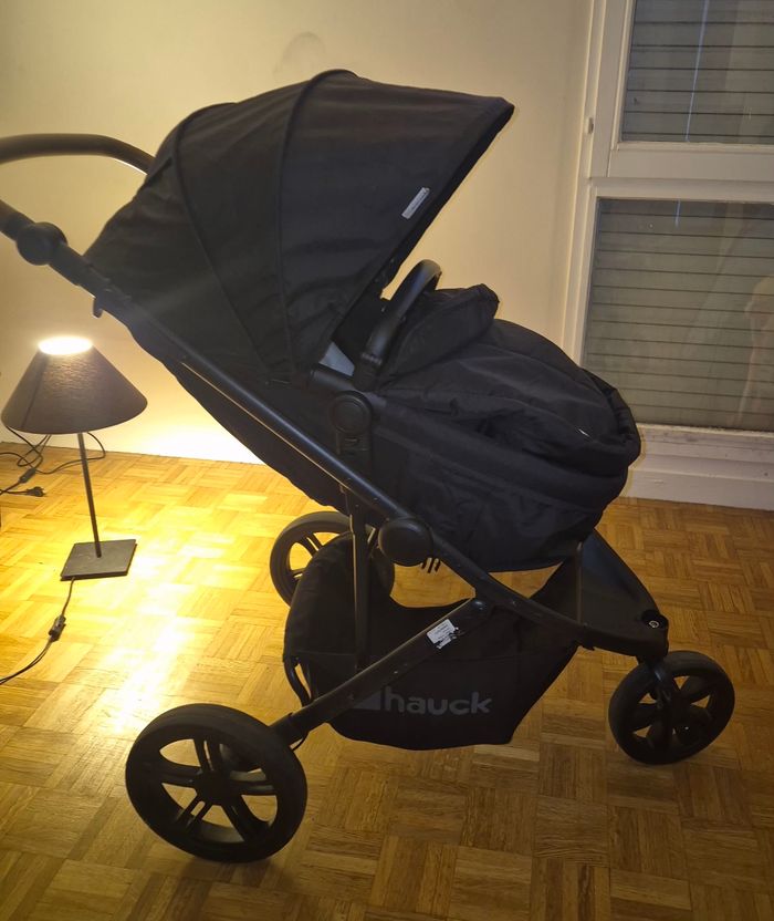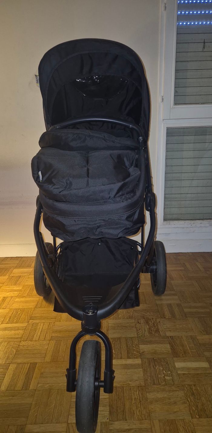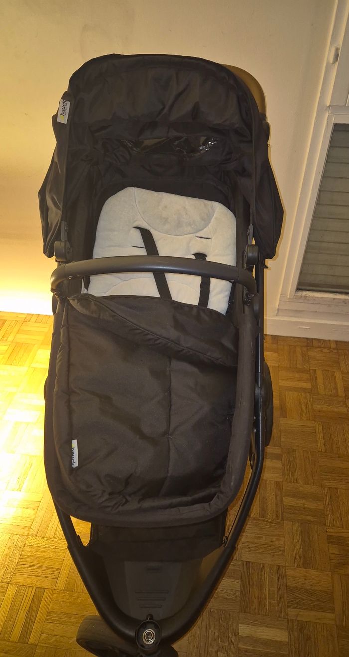 Poussette 3 roues pratique avec le système 3 en 1 (poussette, landeau, cosy), avec habillage de pluie. Facile à plier et à déplier Les roues s'enlevent pour pouvoir ranger la poussette dans le coffre facilement. Bonne maniabilité et robustesse