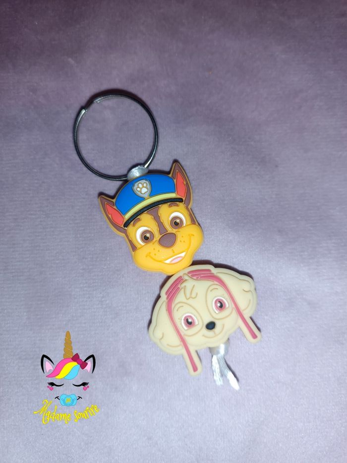 Un mini porte clés Pat Patrouille pour accrocher vos clefs en toute sécurité, composé de perles en silicone alimentaire et/ou bois naturel. 100% personnalisable, énormément de choix de clips, perles, etc… Envoyez-moi un message afin de créer main dans la main votre accessoire idéal. Une photo du prototype de celui-ci vous est envoyé pour validation avant envoi.