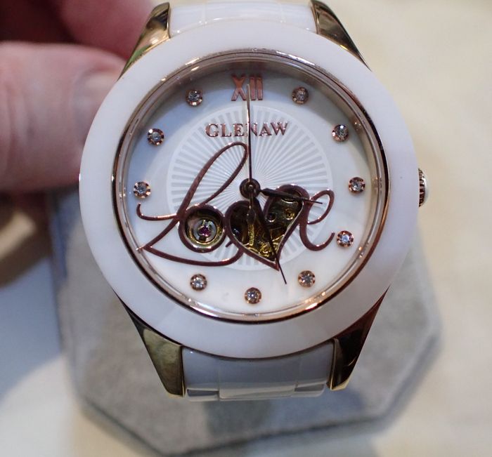 ELEGANTE MONTRE GLENAW LOVE AUTOMATIQUE CŒUR SQUELETTE ,