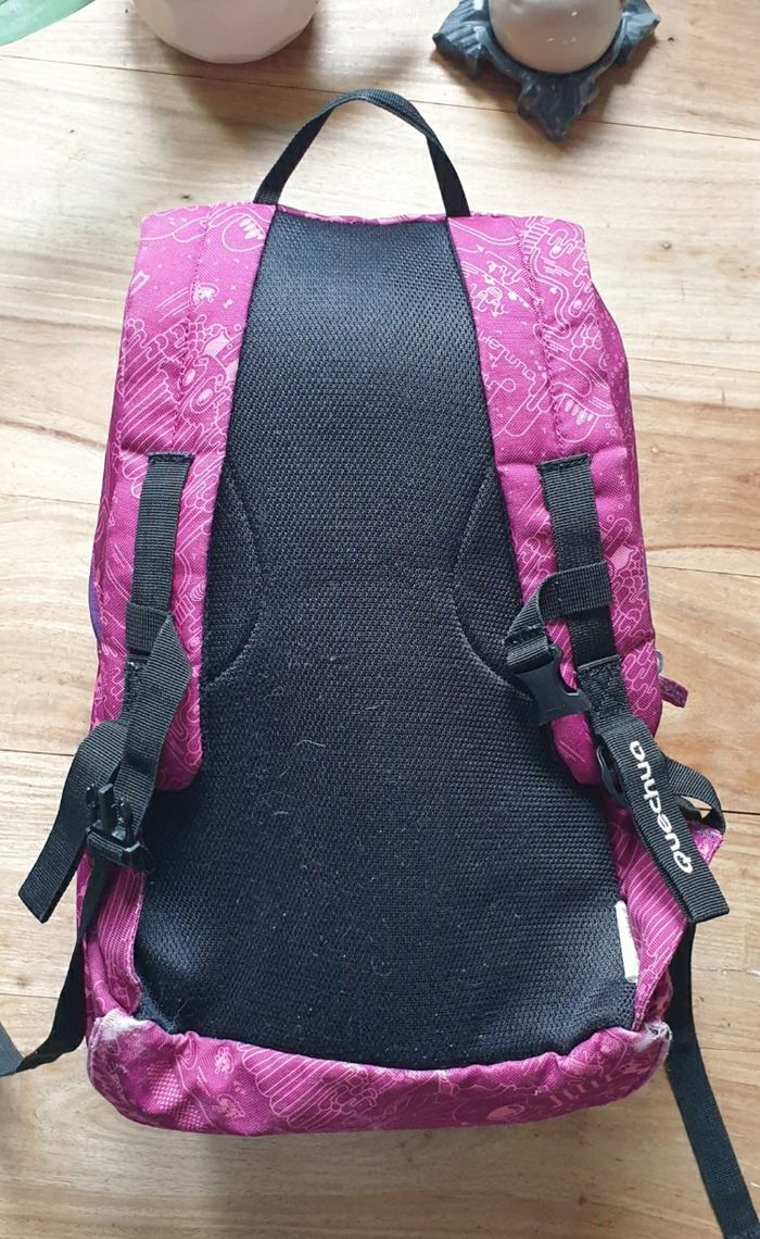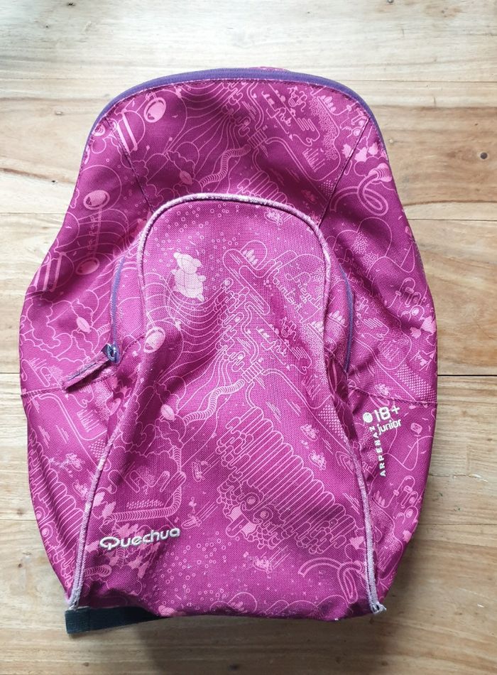 Sac à dos enfant Quechua rose Des traces d usure mais pas de trou. Zip et Bretelles ok