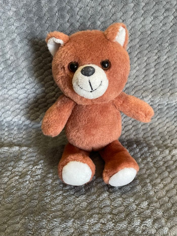 Peluche ours Teddy l’ourson marron et blanc +/- 20cm Happywool En excellent état Vous achetez le doudou que vous voyez sur la photo