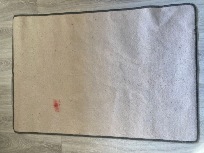 Tapis, enfants, thème voiture. En bon état sur les motifs en revanche derrière une grosse tache rouge et une petite rouge qui ne part pas.
