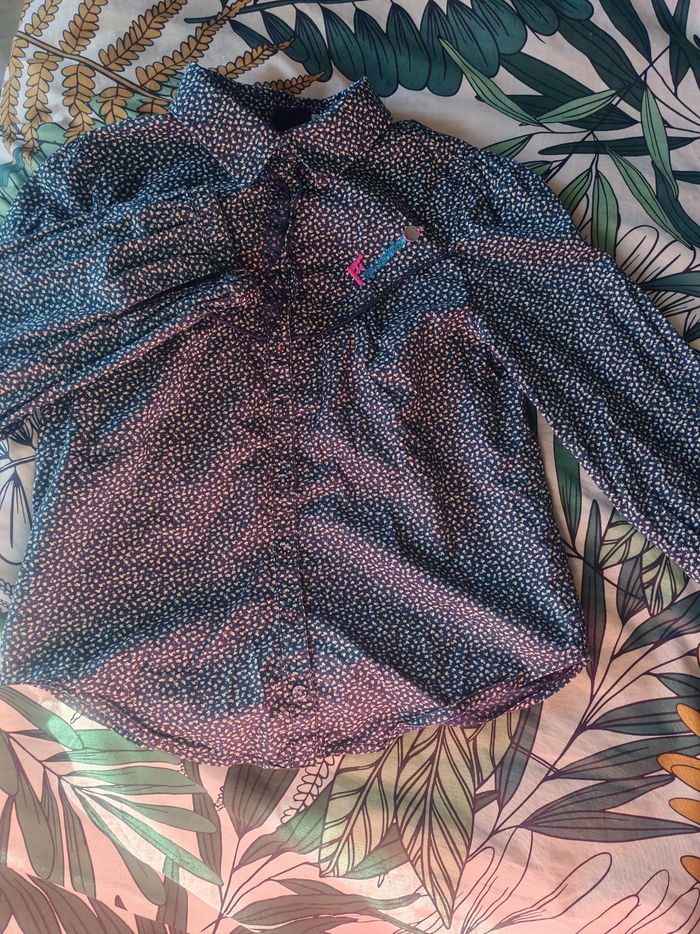 Chemise bleu marine motif fleuri très bon état taille 8 ans