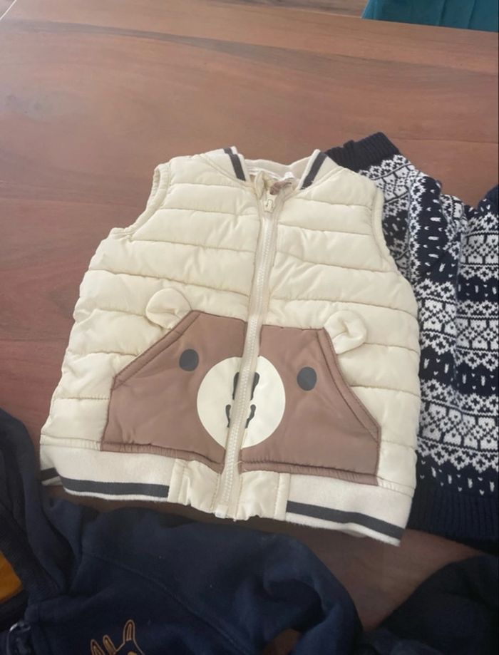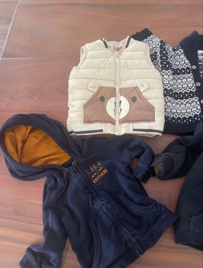 Lot de 3 vestes et une doudoune sans manche en 9M (71cm) En très bon état. Pas de taches. Plusieurs marques