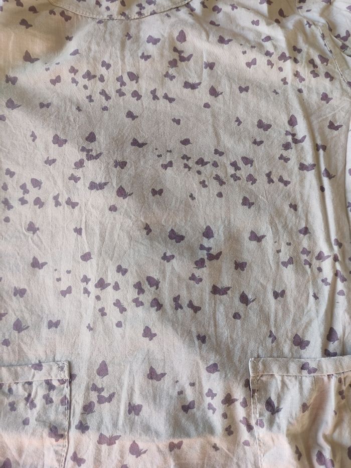 Robe légère idéal mi saison beige motif papillon violet très bon état taille 8 ans