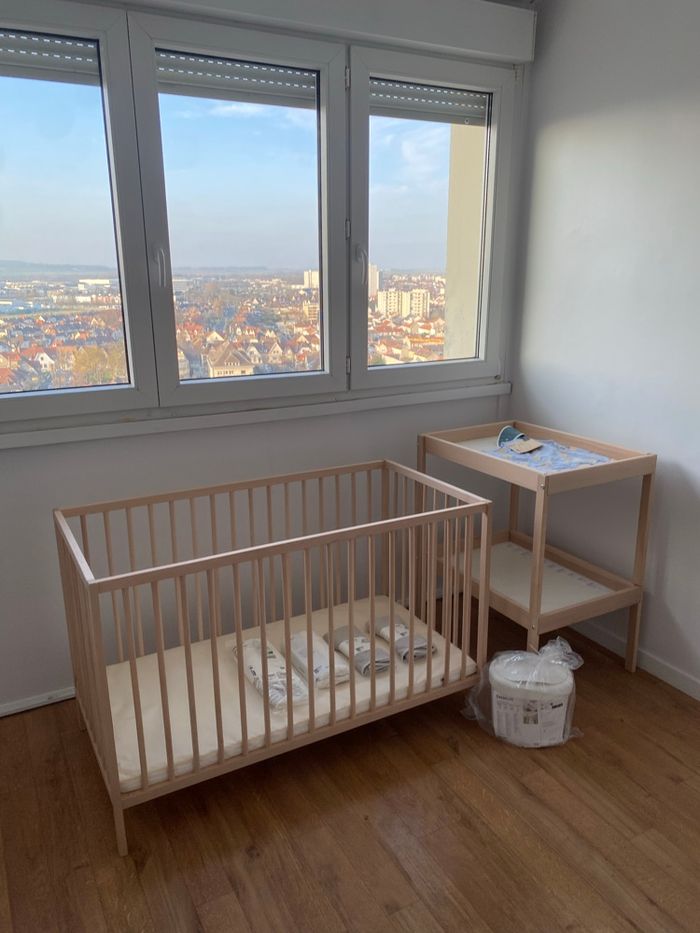 À vendre ensemble mobilier bébé neuf, jamais utilisé. Comprend : • 1 berceau / lit bébé en bois clair, solide et moderne • 1 table à langer assortie, pratique avec étagère de rangement • Draps inclus • 1 alèse neuve • Corbeilles pour table à langer (lot de 4) • Protections pour matelas à langer Le tout est neuf, encore jamais servi. Design sobre et élégant, s’intègre facilement dans n’importe quelle chambre de bébé. Ensemble idéal pour accueillir un nouveau-né, prêt à l’emploi. 💡 Valeur neuve IKEA : environ 165 € 📍 À venir chercher sur place 💬 N’hésitez pas à me contacter pour plus d’informations