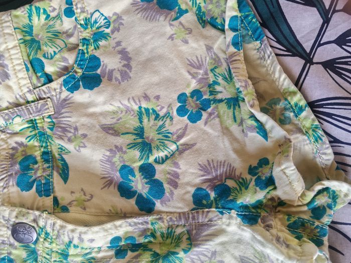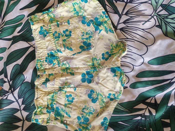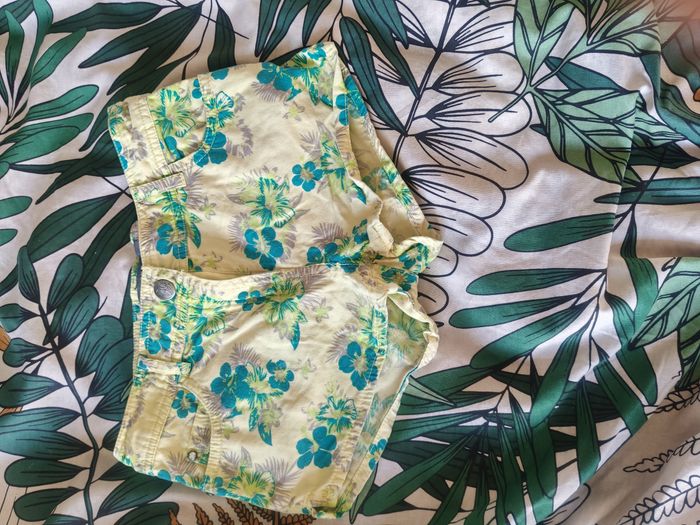 Short jaune motif fleur réglable à la taille noté 7 ans mais taille grand