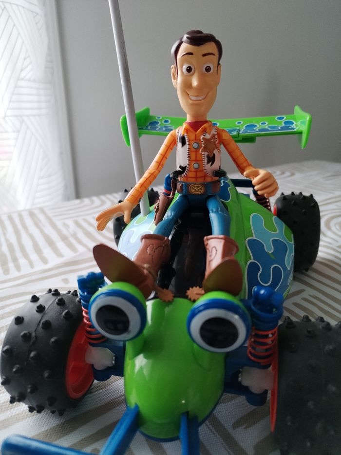 A vendre voiture Toy Story et Woody, ne fonctionne plus, juste en déco ou à faire rouler à la main