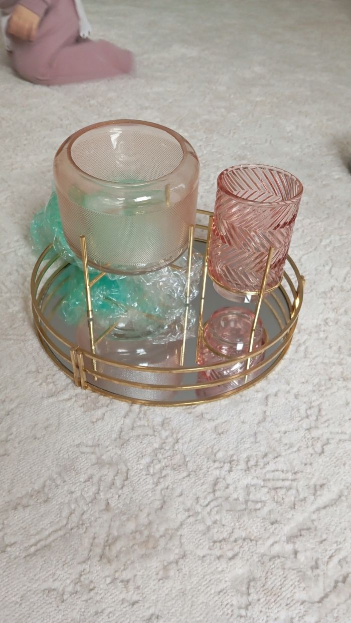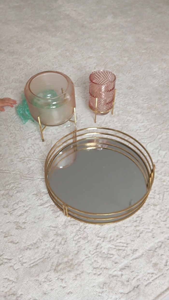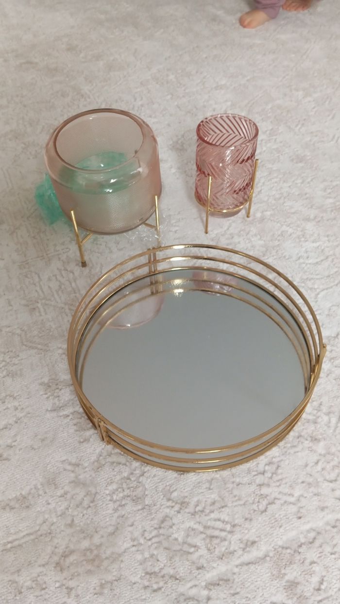 Décoration doré Plateau miroir 2 bougoire ou vase a votre guise