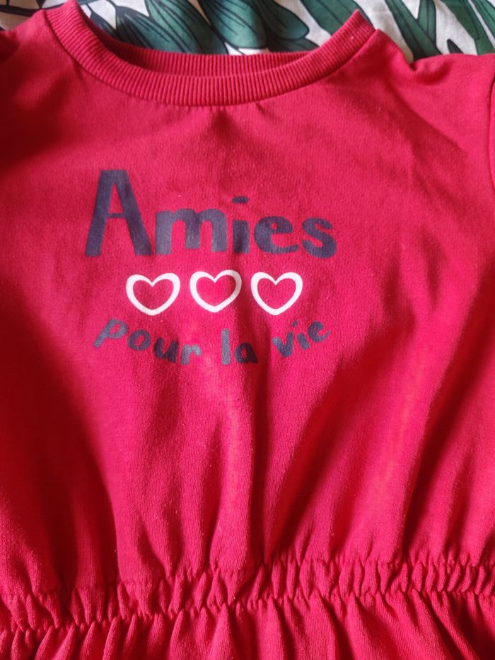 Robe manches longues rouge avec inscription très bon état taille 8 ans