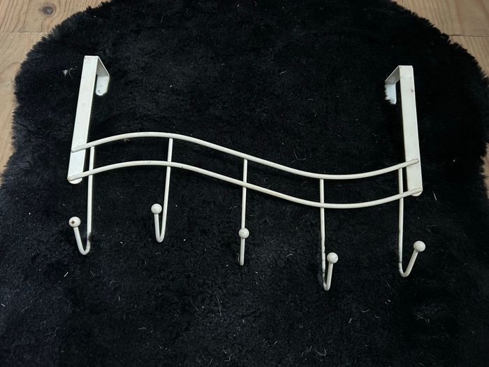 Patère de porte blanche en fer en bon état avec 5 crochets
