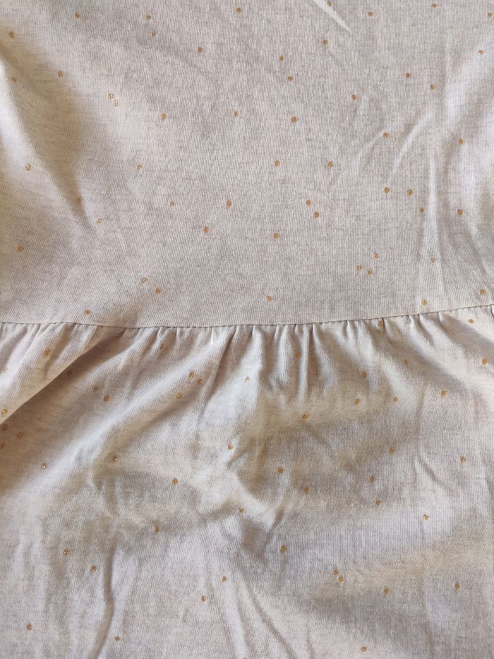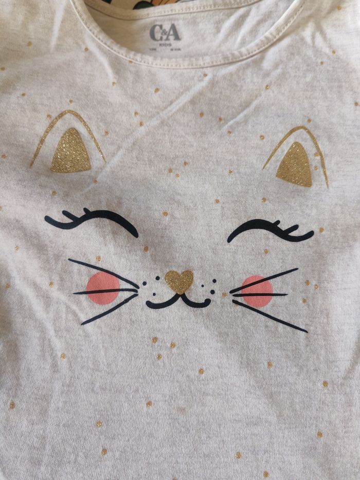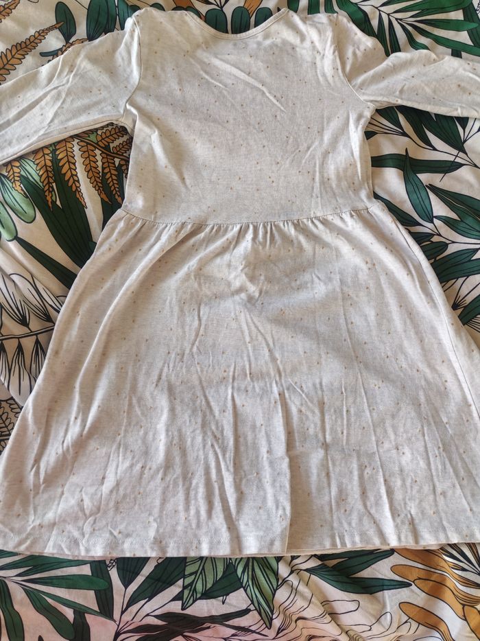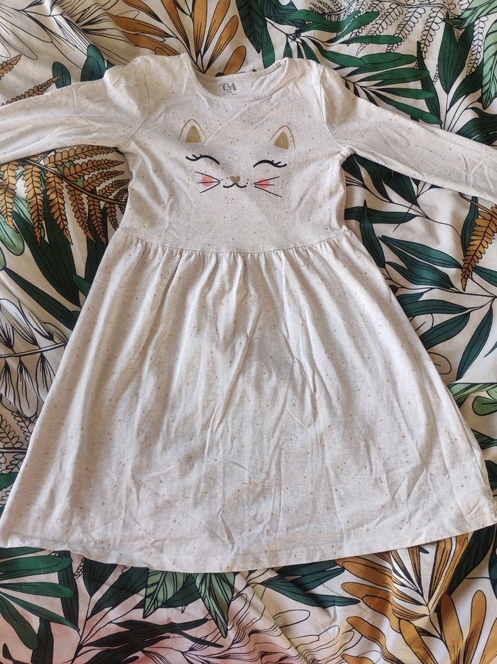 Robe mi saison beige motif tête de chat très bon état taille 8 ans