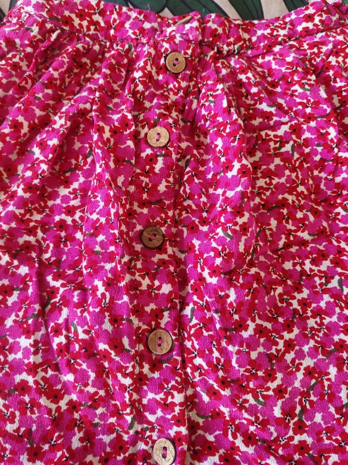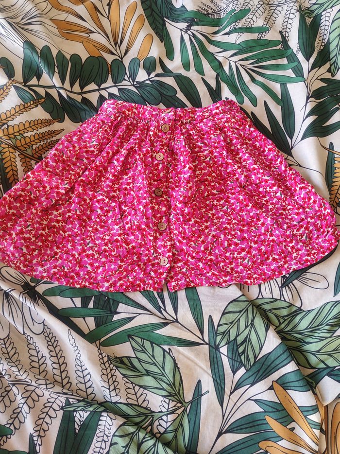 Jupe rose motif fleuri réglable à la taille très bon état taille 8 ans
