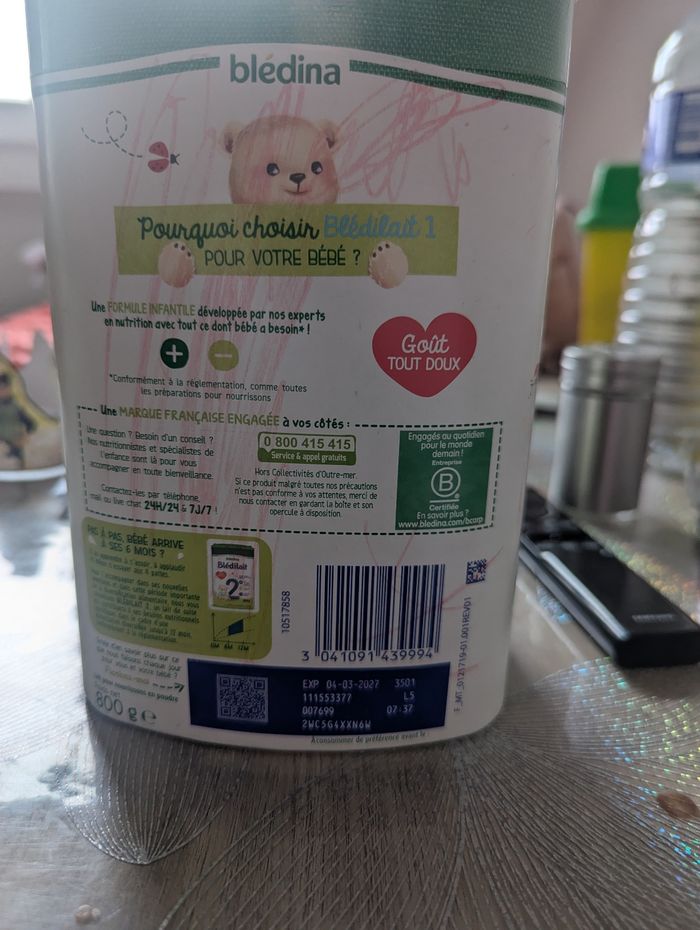 Boite de lait bledilait neuf Vend 8 euro car ma fille a écrit dessu