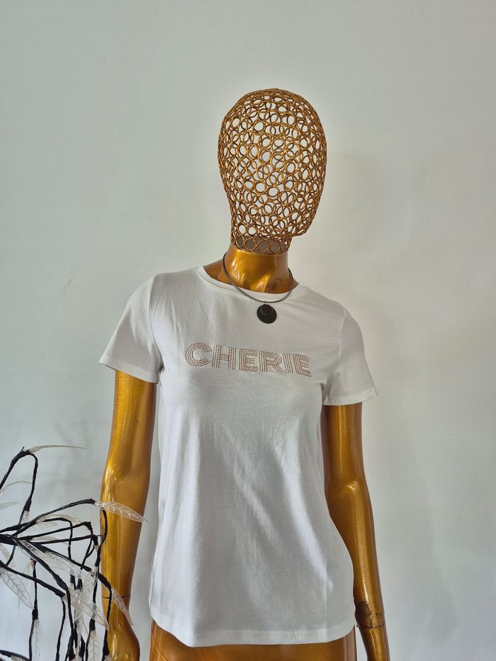 👕 Tee-shirt Femme "CHERIE" 🔎 Taille L 📏 Longueur du Tee-shirt : Environ 60 cm 💠 95% Coton, 5% Elasthane 🏷 Neuf avec étiquette, sous blister 🚚 Envoi Rapide et Soigné