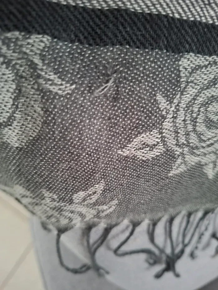 Echarpe très bon état, juste petits fils tirés voir photo Tons gris 1.76 m environ x 66 cm