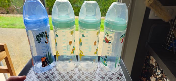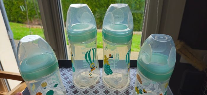 En excellent état! Très peu utilisés, essayés 3 ou 4 fois mais ne conviennent pas à mon bébé ! 4 biberons de 330ml (sans tétines) 2 biberons de 270ml (sans tétines) 2 biberons de 150ml (sans tétines) Biberons manipulés avec soin, stérilisés. Les tétines sont en vente dans mon dressing, possibilité de faire un lot et de négocier un peu ! Livraison plus rapide si envoie relais colis 💥💥N'hésitez pas à vous abonnez à mon profil et à regarder toutes mes ventes, vêtements fille de 1mois à 8 ans, vêtements et accesoires garçon de 1 mois à 14/16 ans. Matériel de puériculture, jeux, jouets, livres... et vêtements femmes et vêtements femme enceinte 💥💥