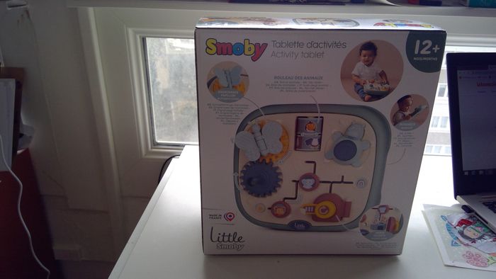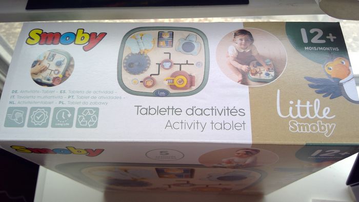 Smoby Little Tablette d'activités TARIF 18€ Dès 12 mois. Permet de stimuler les sens, développer la motricité fine, son imagination et découvrir la relation de cause à effet. Tourner, appuyer, pousser, déplacer,... des manipulations indispensables