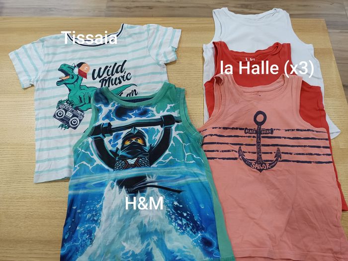 Lot de 10 t-shirts taille 4 ans: Certains en TB état mais mis satisfaisant car parfois peluches ou petites tâche. Tarif adéquat. Marques sur photos.