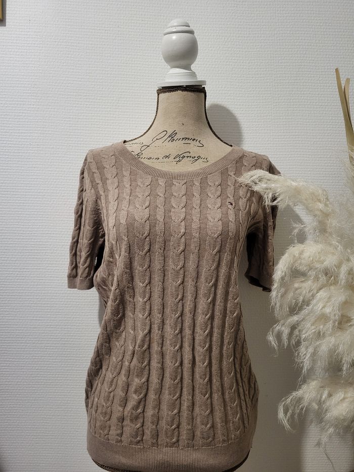 Tee shirt motif torsadé en coton de marque tommy hifliger Taille M Présente une petite tache que l'on peut apercevoir sur le derrière photo Hors mis ça, il est en très bonne état
