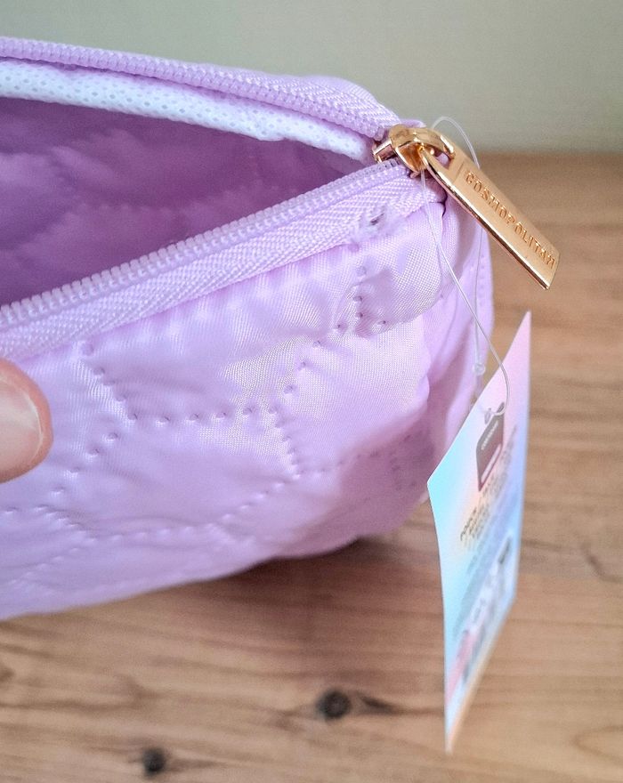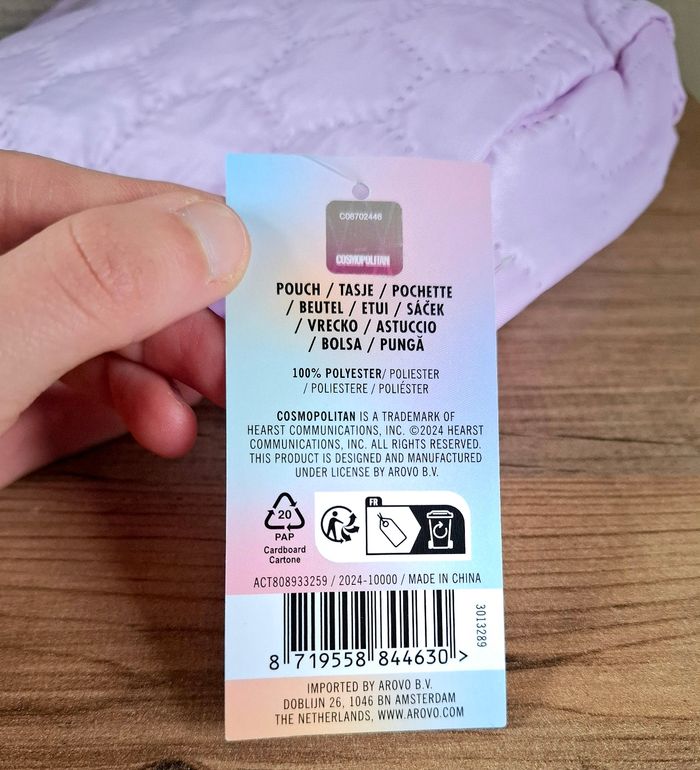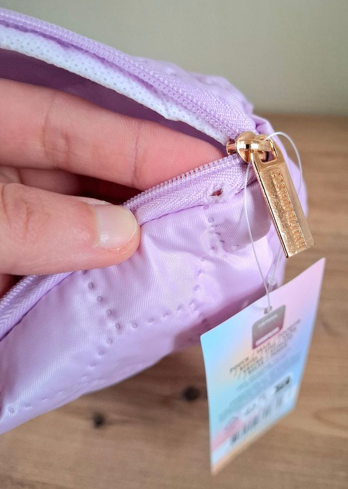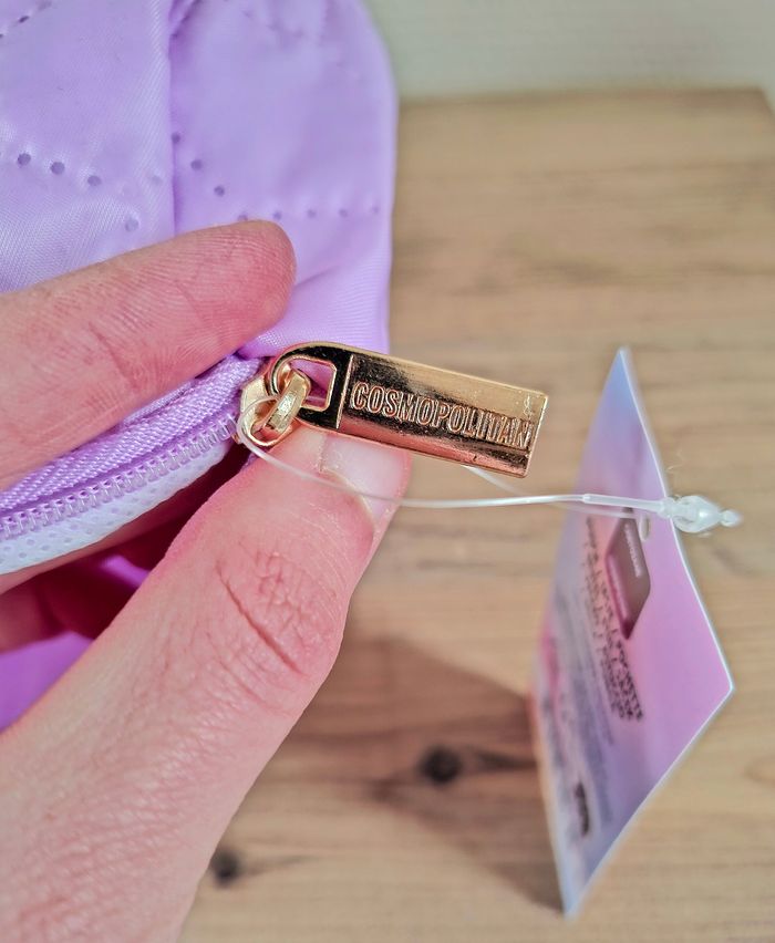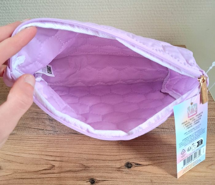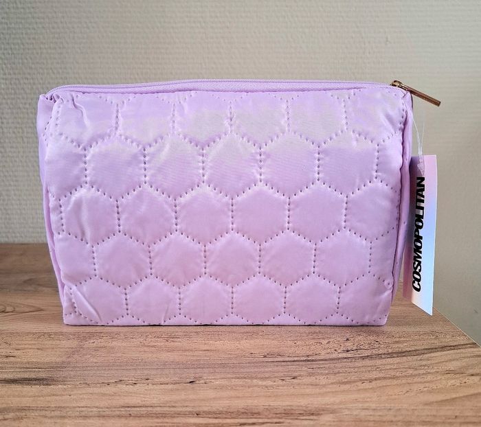 Je vends une trousse de toilette (pochette) de couleur Lilas et de la marque Cosmopolitan venant de chez Action. Elle mesure 17 cm de hauteur - 21 cm de longueur et 6,5 cm de profondeur. Attention : elle présente un petit trou près de la fermeture éclair mais quasi non voyant (voir photos). 100% Polyester. Neuve avec étiquette.