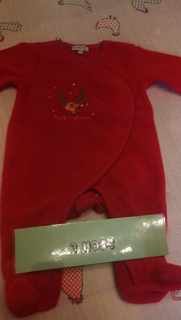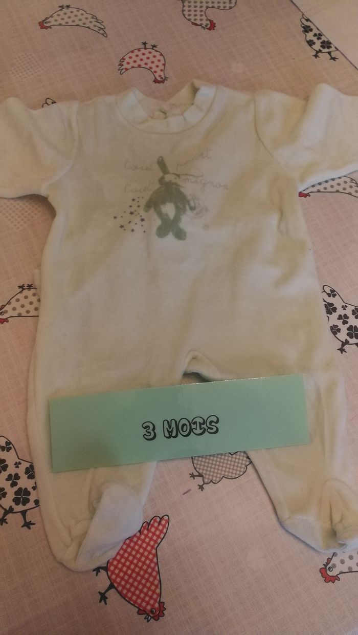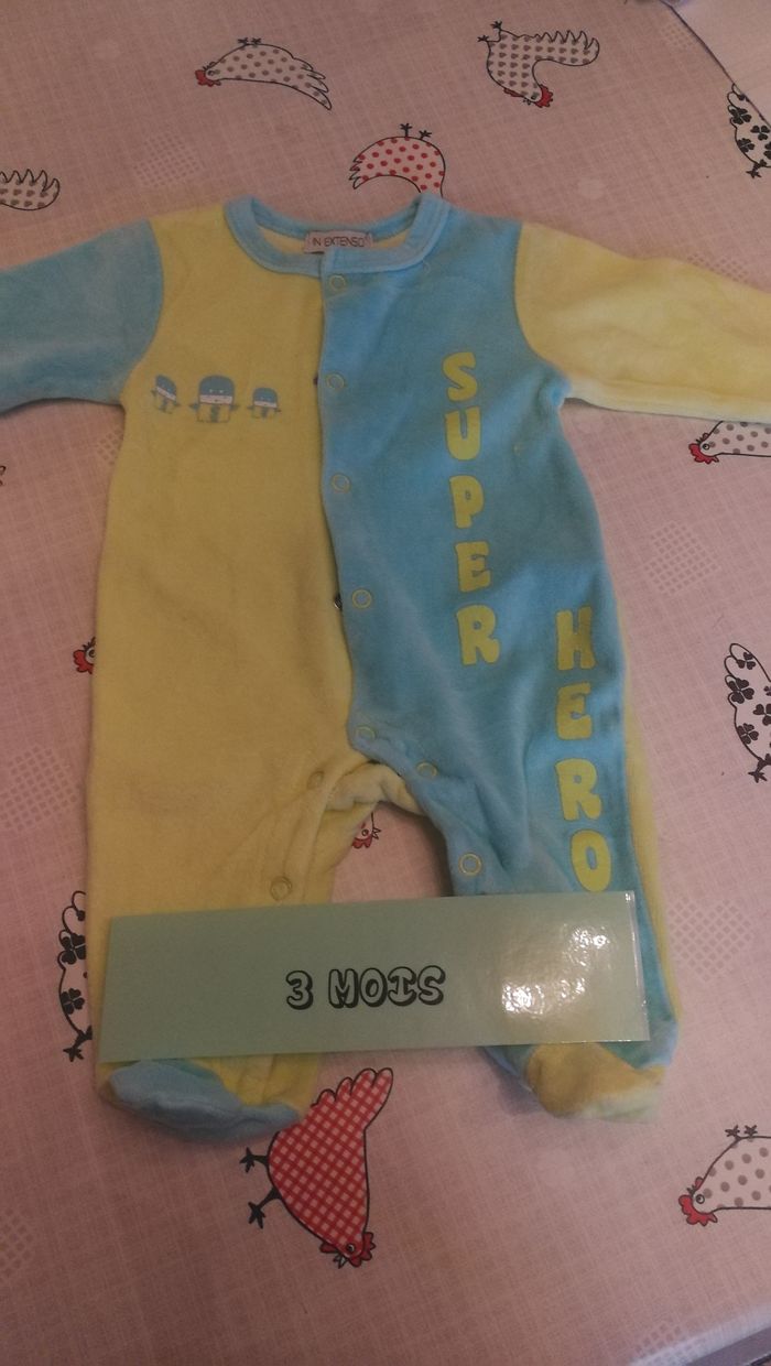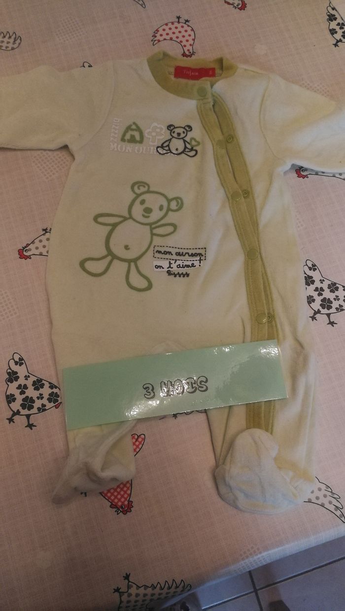 Lot de vêtements 3mpis comprenant 1 veste de jogging à capuche 1 collant avec pieds 1 veste 5 pyjamas 3 bodys manches longues Maison non fumeur Le tout en très bon état