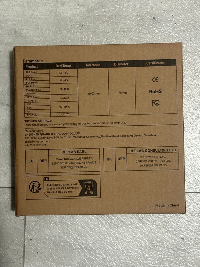 Je vends ce filament HS-PETG blanc de la marque Kingroon, idéal pour l'impression 3D. - Type de produit : Filament d'impression 3D - Marque : Kingroon - Matière: HS-PETG - Couleur : Blanc - Diamètre : 1,75 mm - Tolérance de diamètre : ±0,03 mm - Bobine plastique de 1 kg État neuf, sous emballage scellé. N'hésitez pas à me contacter pour toute question ! Envoie rapide et soigné